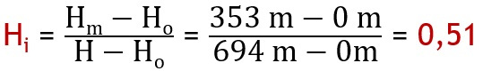 Αν τώρα εκτιμήσουμε τον ίδιο δείκτη αντικαθιστώντας στη σχέση το Lb με την οριζόντια απόσταση του σημείου μεγίστου υψομέτρου από το αντίστοιχο ελαχίστου υψομέτρου lb= 3560m έχουμε: Rh= 0,19